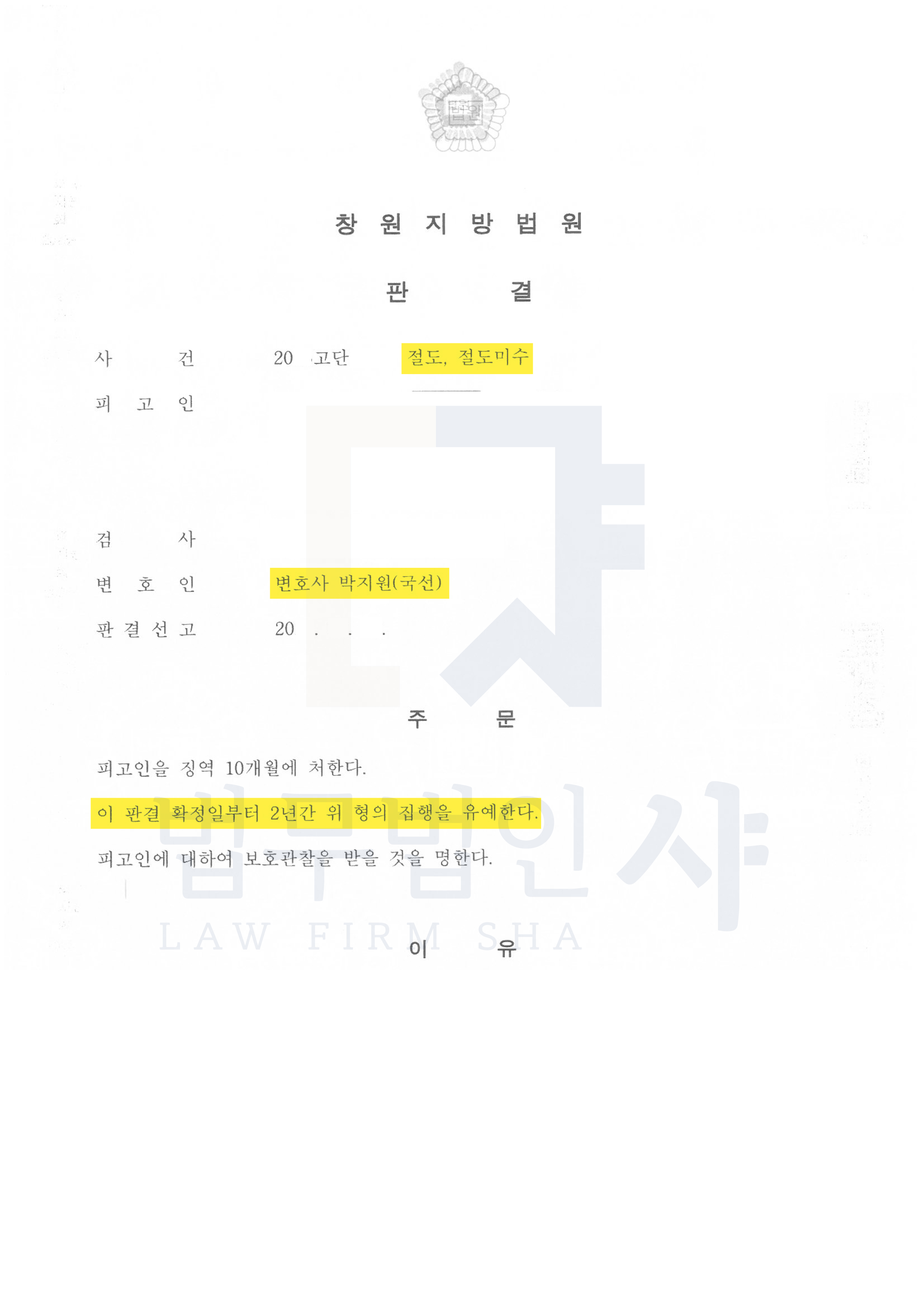 창원지방법원은 20XX년 XX월 XX일 판결을 통해 피고인에게 징역 10개월에 집행유예 2년을 선고했습니다.