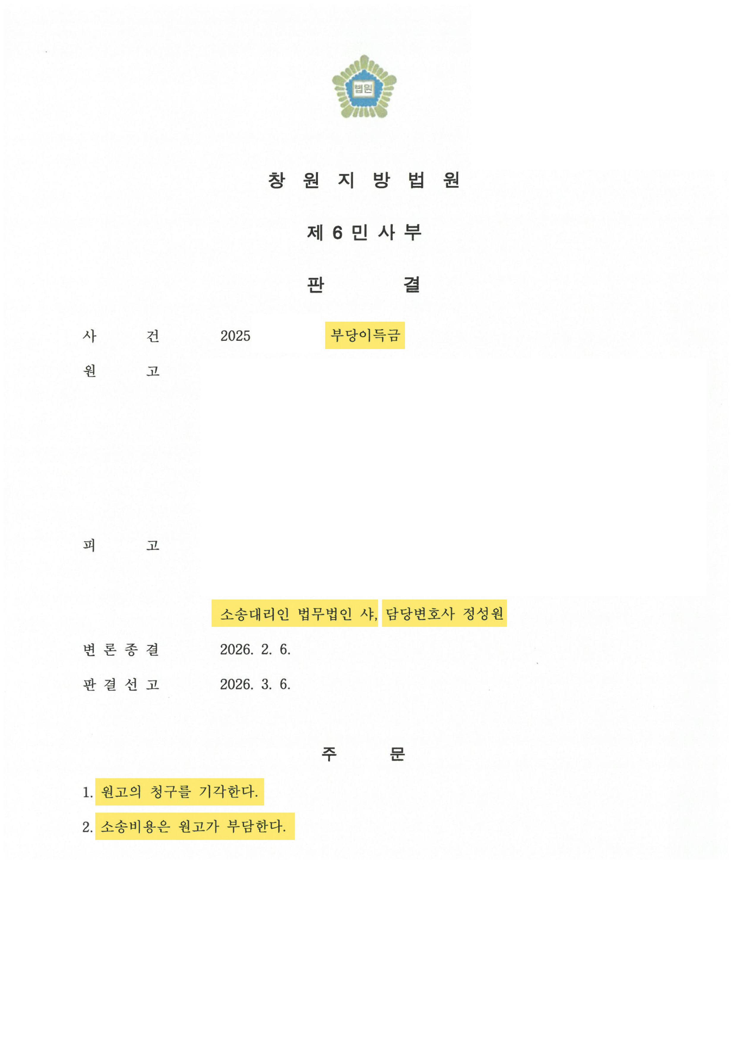 부당이득금 / 전부승소