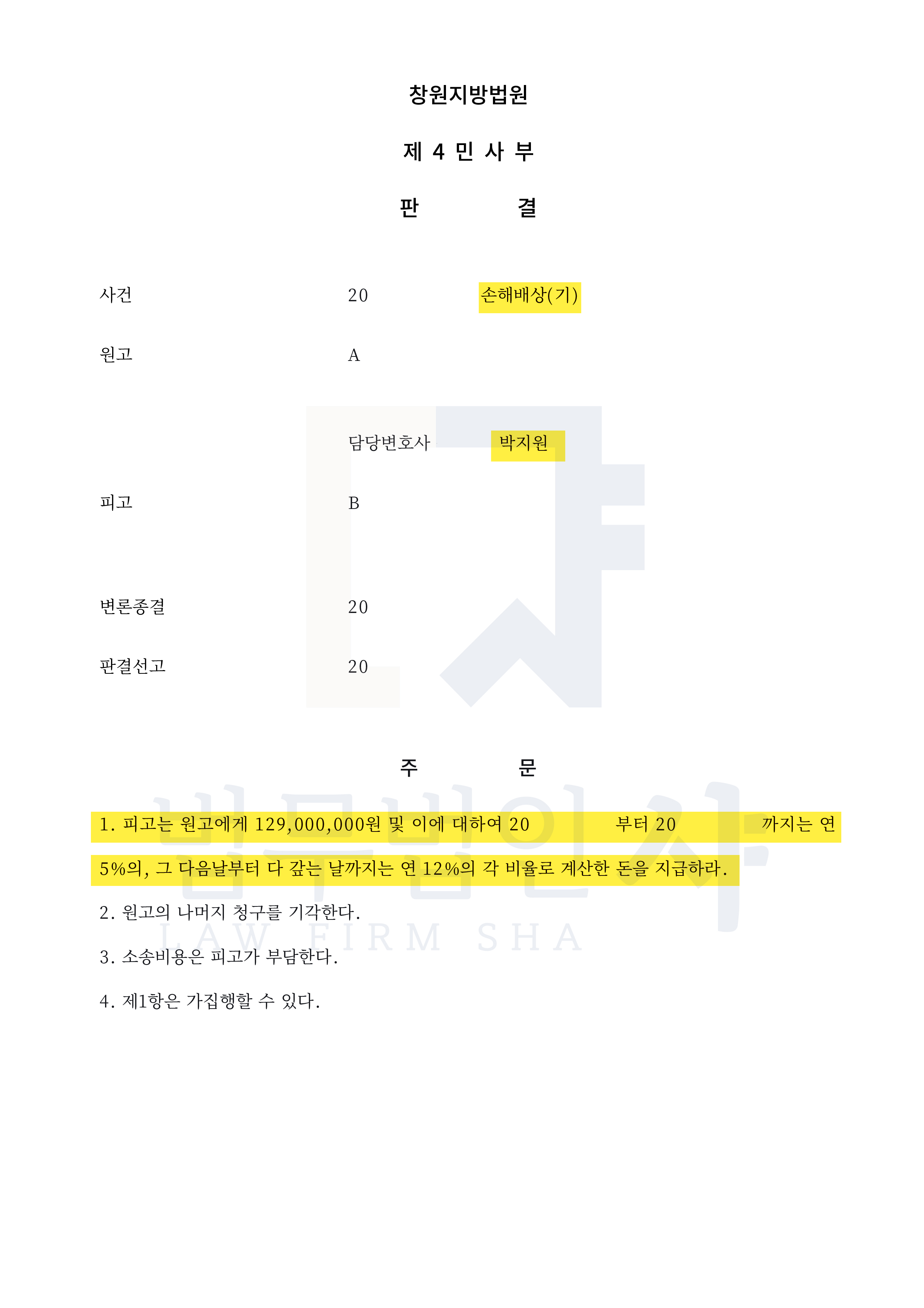 결국 피고는 원고에게 129,000,000원 및 이에 대한 지연손해금을 지급하라는 판결을 받았으며, 소송비용도 부담하게 되었습니다.
