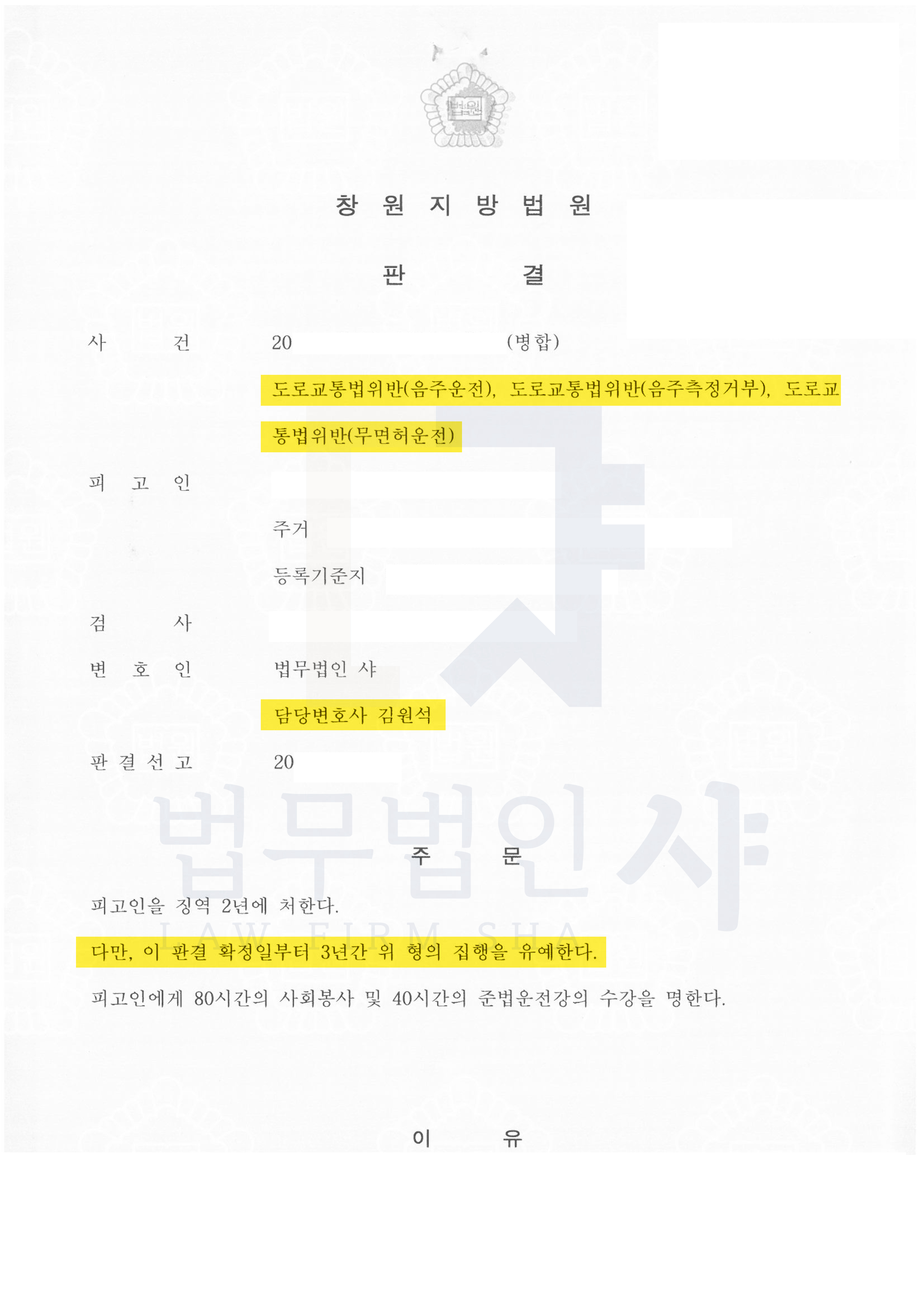 이에 법원은 본 변호인의 의견을 받아들여 집행 유예 3년의 판결을 선고하였습니다.
