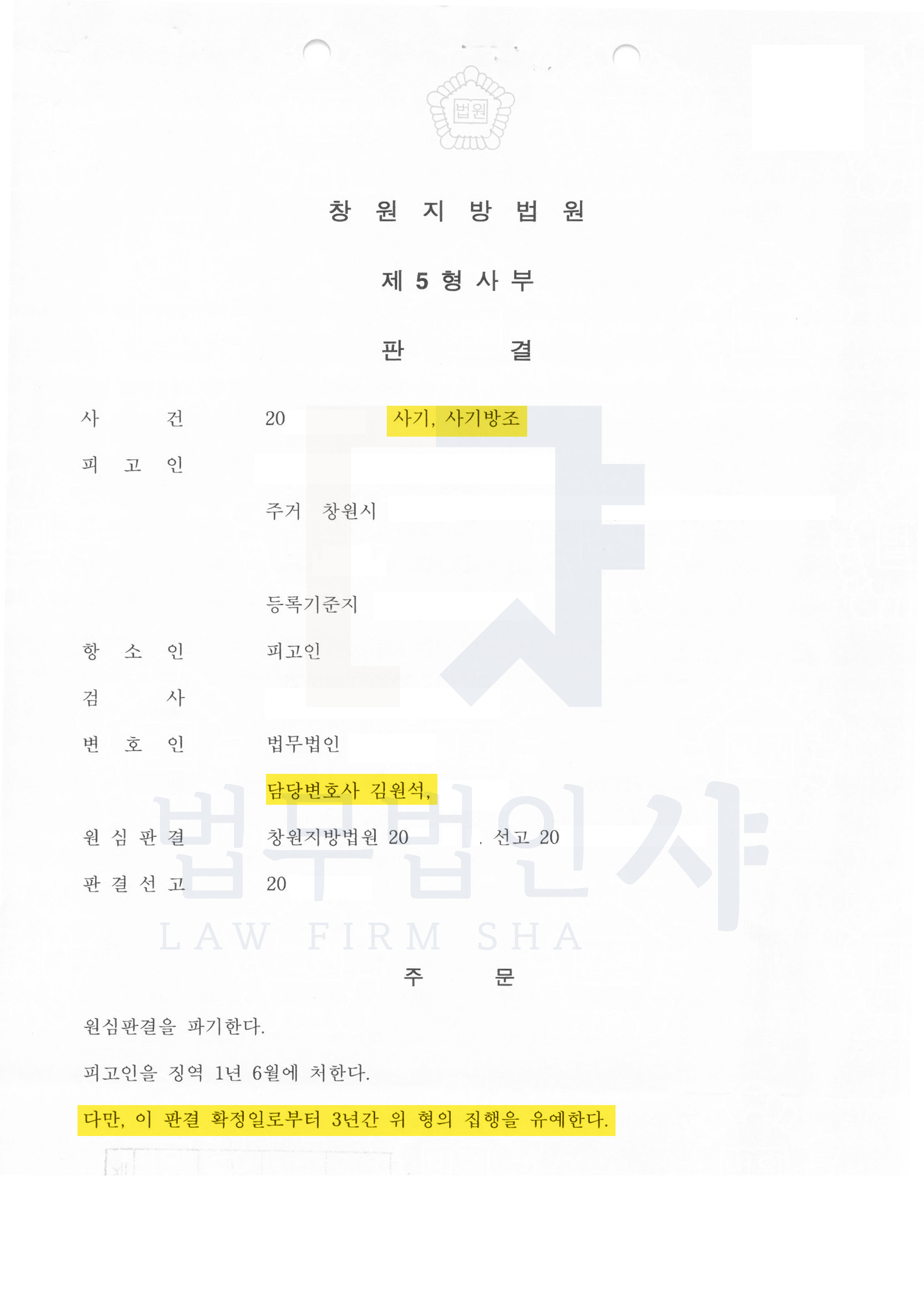원심 판결 파기, 피고인에게 징역 1년 6월, 집행유예 3년 선고하였습니다.