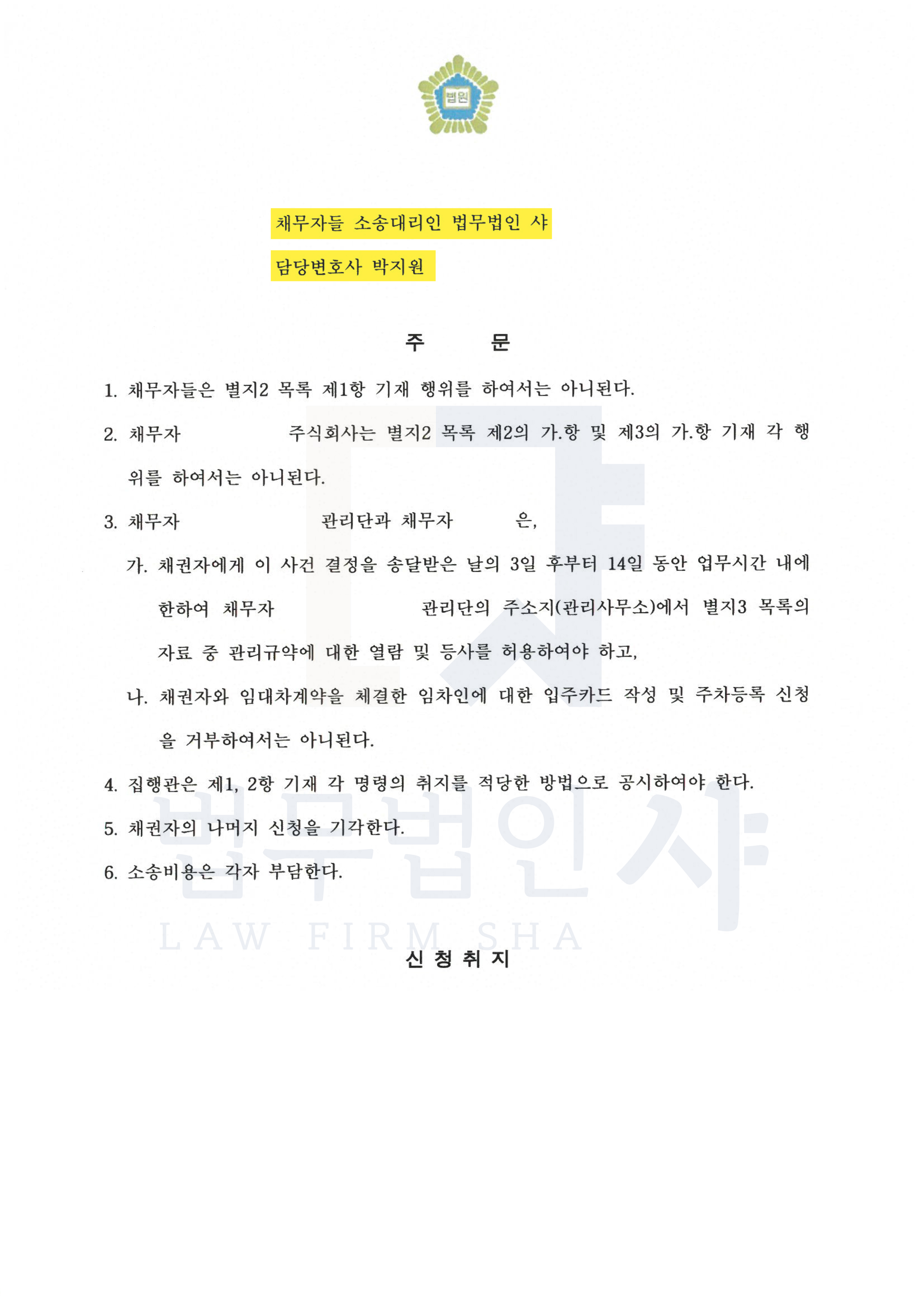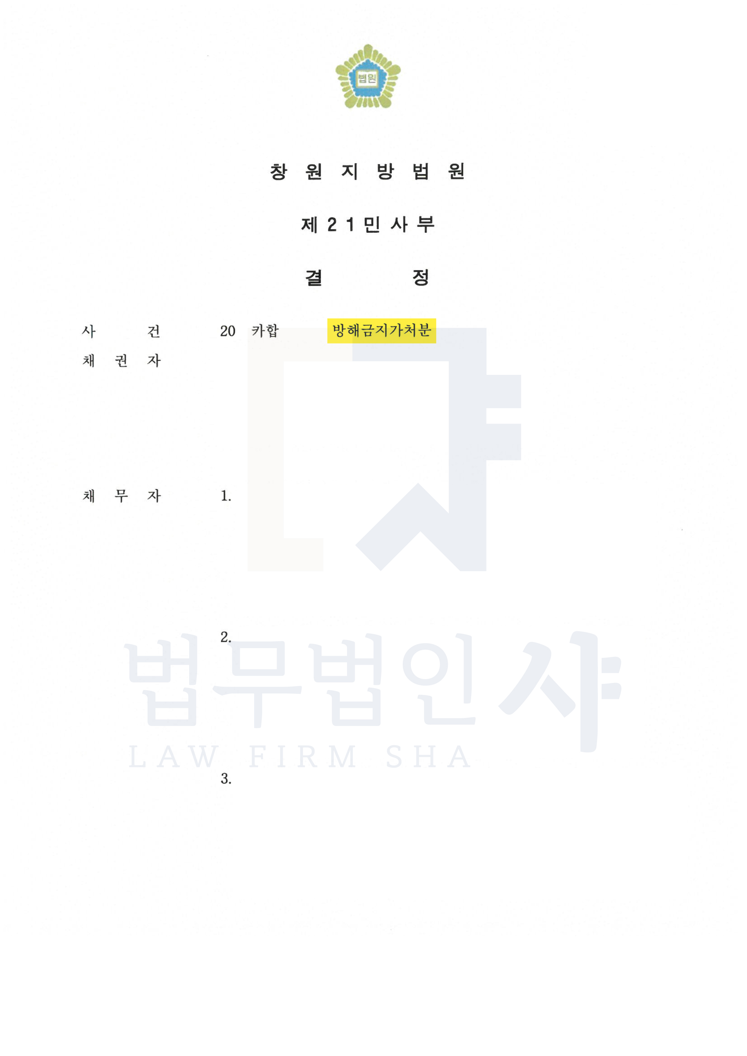 창원지방법원은 채권자의 신청을 일부만 인용하고 대부분을 기각했습니다.